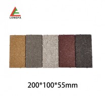 4 、膠粘石子磚:由于使用有機(jī)材料粘合而成,風(fēng)吹日曬,二年左右會出現(xiàn)老化變性,造成材料易碎、易斷等問題。